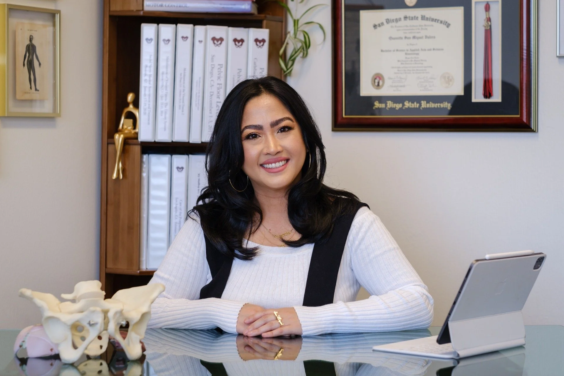 Quozette Valera is from Long Beach, CA and graduated from Chapman University with her DPT in 2015. She's been in the pelvic health specialty for 6 years and has an affinity for bladder dysfunction as well as special interest and training as a childbirth educator. She's an advocate for bodily autonomy and reproductive justice is the hill she has chosen to expire on.